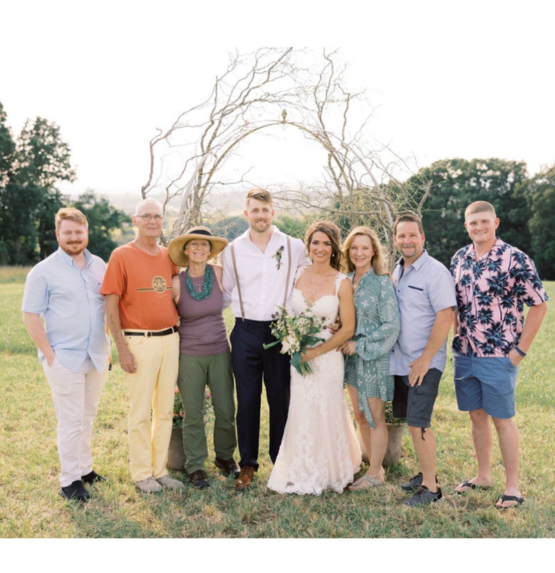 Our Family : Drew, Joe, Lorann, Luke, Jamie, Anastasia, Robert & Austin here on the farm at Jamie & Luke's wedding (the wedding arch was handmade by my mom, Lorann! and our honey bee logo was hand painted by my dad, Joe!)